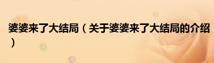 婆婆來了大結局(關于婆婆來了大結局的介紹)