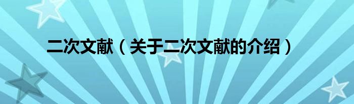 二次文獻(xiàn)(關(guān)于二次文獻(xiàn)的介紹)
