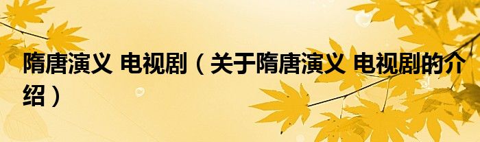 隋唐演義 電視劇(關(guān)于隋唐演義 電視劇的介紹)
