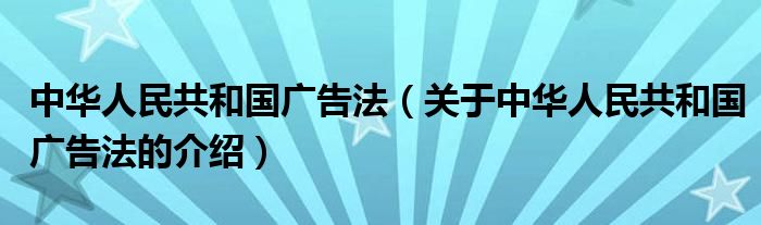 中華人民共和國(guó)廣告法(關(guān)于中華人民共和國(guó)廣告法的介紹)