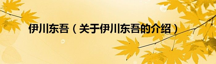 伊川東吾(關(guān)于伊川東吾的介紹)
