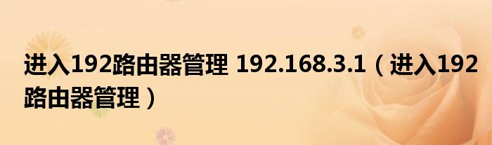進(jìn)入192路由器管理 192.168.3.1(進(jìn)入192路由器管理)