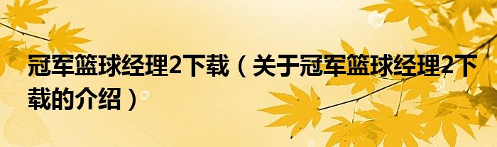 冠軍籃球經(jīng)理2下載(關(guān)于冠軍籃球經(jīng)理2下載的介紹)