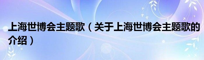 上海世博會主題歌(關(guān)于上海世博會主題歌的介紹)