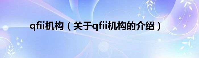 qfii機(jī)構(gòu)(關(guān)于qfii機(jī)構(gòu)的介紹)
