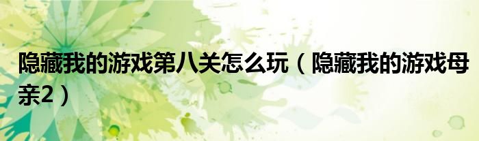 隱藏我的游戲第八關(guān)怎么玩(隱藏我的游戲母親2)