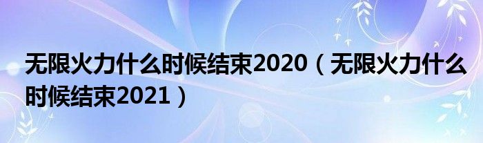 無限火力什么時(shí)候結(jié)束2020(無限火力什么時(shí)候結(jié)束2021)