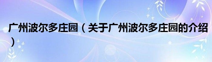 廣州波爾多莊園(關(guān)于廣州波爾多莊園的介紹)