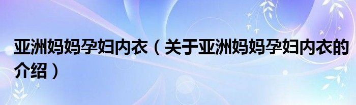 亞洲媽媽孕婦內衣(關于亞洲媽媽孕婦內衣的介紹)