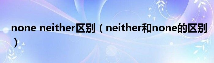 關(guān)于none neither區(qū)別,neither和none的區(qū)別這個(gè)很多人還不知道,今天菲菲來為大家解答以上的問題,現(xiàn)在讓我們一起來看看吧!