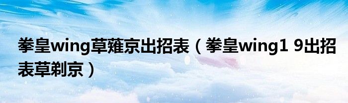 拳皇wing草薙京出招表(拳皇wing1 9出招表草剃京)