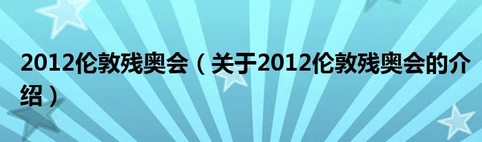 2012倫敦殘奧會(huì)(關(guān)于2012倫敦殘奧會(huì)的介紹)