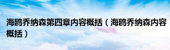 海鷗喬納森第四章內(nèi)容概括(海鷗喬納森內(nèi)容概括)