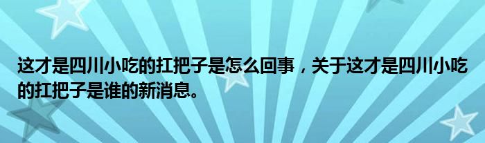 這才是四川小吃的扛把子是怎么回事,關于這才是四川小吃的扛把子是誰的新消息。