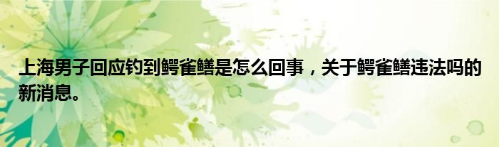 上海男子回應(yīng)釣到鱷雀鱔是怎么回事,關(guān)于鱷雀鱔違法嗎的新消息。
