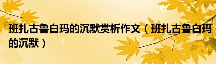 班扎古魯白瑪的沉默賞析作文(班扎古魯白瑪的沉默)