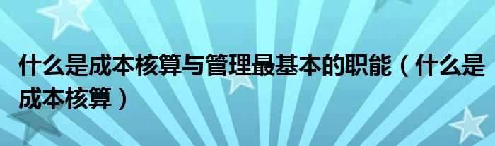 什么是成本核算與管理最基本的職能(什么是成本核算)
