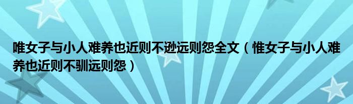 唯女子與小人難養(yǎng)也近則不遜遠(yuǎn)則怨全文(惟女子與小人難養(yǎng)也近則不馴遠(yuǎn)則怨)
