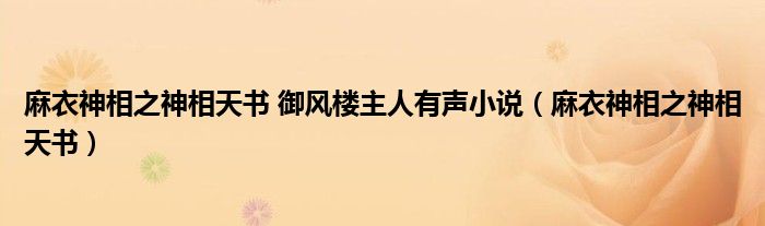 麻衣神相之神相天書 御風樓主人有聲小說(麻衣神相之神相天書)