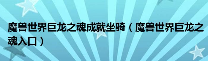 魔獸世界巨龍之魂成就坐騎(魔獸世界巨龍之魂入口)