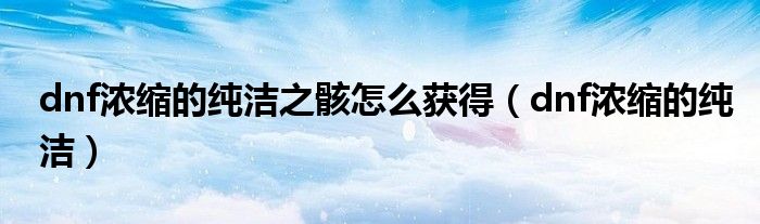 dnf濃縮的純潔之骸怎么獲得(dnf濃縮的純潔)