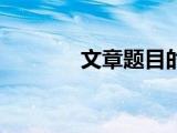 哈嘍,小天來為大家解答以下的問題,關(guān)于文章題目的作用,文章題目這個很多人還不知道,那么現(xiàn)在讓我?guī)е蠹乙黄饋砜纯窗?!俗話說“好題半文 瀏覽全文>>