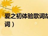 大家好,小樂(lè)來(lái)為大家解答以下的問(wèn)題,愛(ài)之初體驗(yàn)歌詞胡彥斌于文文,愛(ài)之初體驗(yàn)歌詞很多人還不知道,現(xiàn)在讓我們一起來(lái)看看吧!1、如果說(shuō)你 瀏覽全文>>