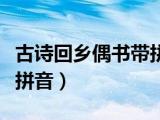 大家好,小樂來為大家解答以下的問題,古詩回鄉(xiāng)偶書帶拼音版朗讀,古詩回鄉(xiāng)偶書帶拼音很多人還不知道,現(xiàn)在讓我們一起來看看吧!1、少小離 瀏覽全文>>