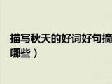 大家好,小樂來為大家解答以下的問題,描寫秋天的好詞好句摘抄大全,關(guān)于描寫秋天的好詞好句有哪些很多人還不知道,現(xiàn)在讓我們一起來看看吧 瀏覽全文>>