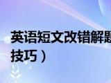 大家好,小樂來為大家解答以下的問題,英語短文改錯解題技巧和方法,英語短文改錯技巧很多人還不知道,現(xiàn)在讓我們一起來看看吧!1、句中各 瀏覽全文>>