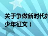 大家好,小樂來為大家解答以下的問題,關(guān)于爭(zhēng)做新時(shí)代好少年的作文,爭(zhēng)做新時(shí)代好少年征文很多人還不知道,現(xiàn)在讓我們一起來看看吧!1、如 瀏覽全文>>