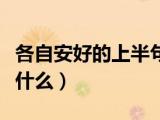 大家好,小樂來為大家解答以下的問題,各自安好的上半句是什么,各自安好下一句是什么很多人還不知道,現(xiàn)在讓我們一起來看看吧!1、各自安 瀏覽全文>>
