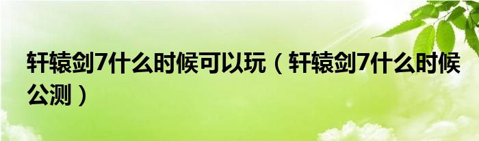 軒轅劍7什么時候可以玩(軒轅劍7什么時候公測)