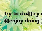 關(guān)于try to do和try doing的區(qū)別,enjoy to do和enjoy doing這個(gè)很多人還不知道,今天菲菲來為大家解答以上的問題,現(xiàn)在讓我們一起來 瀏覽全文>>