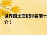 【世界國土面積排名前十】在全球范圍內(nèi),國土面積是衡量一個國家地理規(guī)模的重要指標(biāo)。不同國家的領(lǐng)土大小差異巨大,從廣袤的大陸國家到小型 瀏覽全文>>