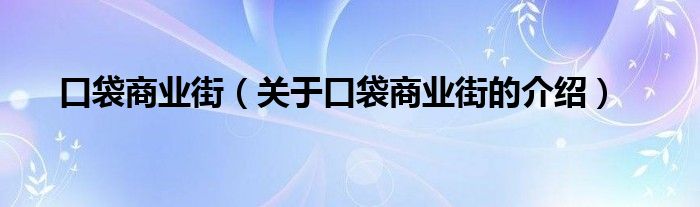 口袋商業(yè)街(關(guān)于口袋商業(yè)街的介紹)