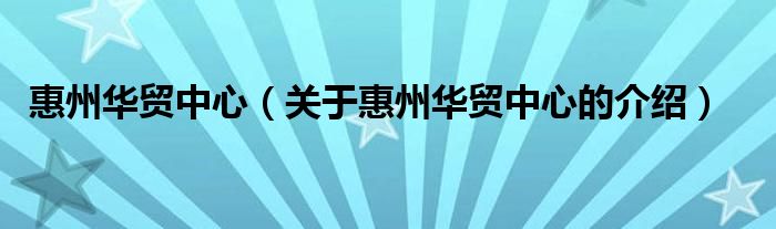 惠州華貿(mào)中心(關(guān)于惠州華貿(mào)中心的介紹)