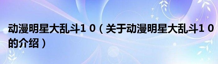 動(dòng)漫明星大亂斗1 0(關(guān)于動(dòng)漫明星大亂斗1 0的介紹)