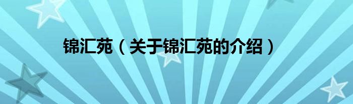 錦匯苑(關(guān)于錦匯苑的介紹)