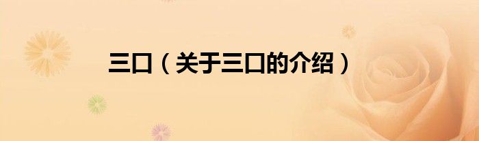 大家好,小都來(lái)為大家解答以上的問(wèn)題。三口,關(guān)于三口的介紹很多人還不知道,現(xiàn)在讓我們一起來(lái)看看吧!