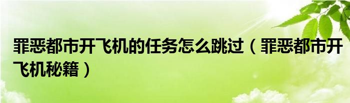 罪惡都市開飛機的任務(wù)怎么跳過(罪惡都市開飛機秘籍)