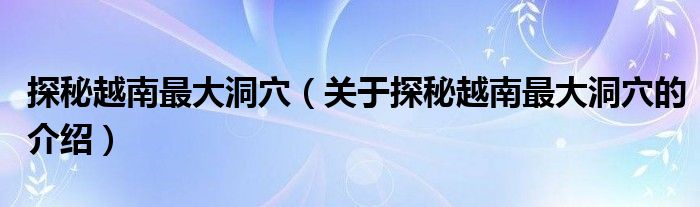 探秘越南最大洞穴(關(guān)于探秘越南最大洞穴的介紹)