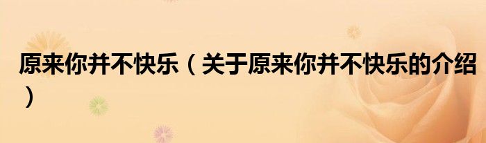 原來你并不快樂(關(guān)于原來你并不快樂的介紹)