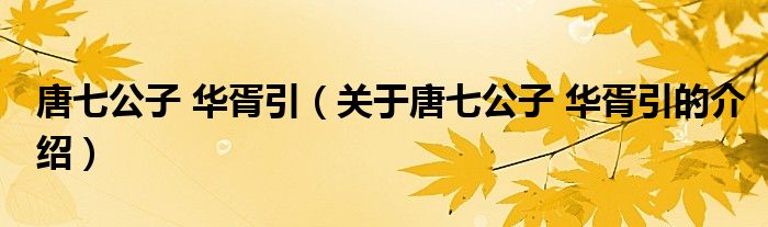 唐七公子 華胥引(關(guān)于唐七公子 華胥引的介紹)