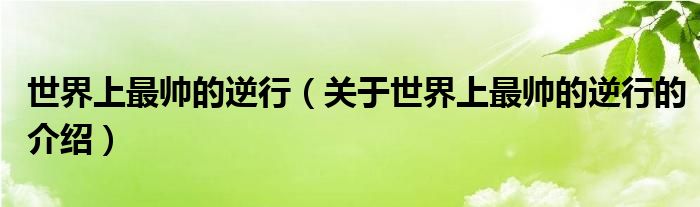 世界上最帥的逆行(關(guān)于世界上最帥的逆行的介紹)