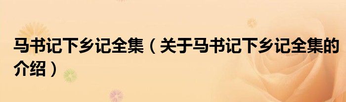 馬書記下鄉(xiāng)記全集(關(guān)于馬書記下鄉(xiāng)記全集的介紹)