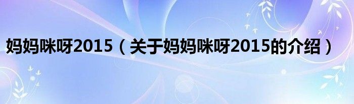 媽媽咪呀2015(關(guān)于媽媽咪呀2015的介紹)