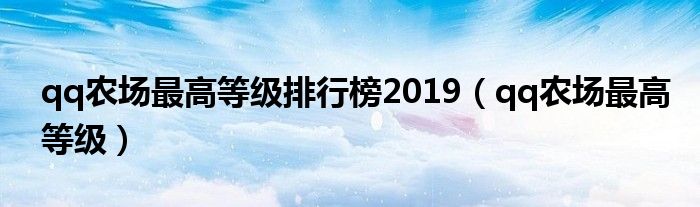 qq農(nóng)場(chǎng)最高等級(jí)排行榜2019(qq農(nóng)場(chǎng)最高等級(jí))