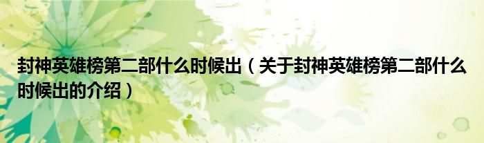 封神英雄榜第二部什么時候出(關(guān)于封神英雄榜第二部什么時候出的介紹)